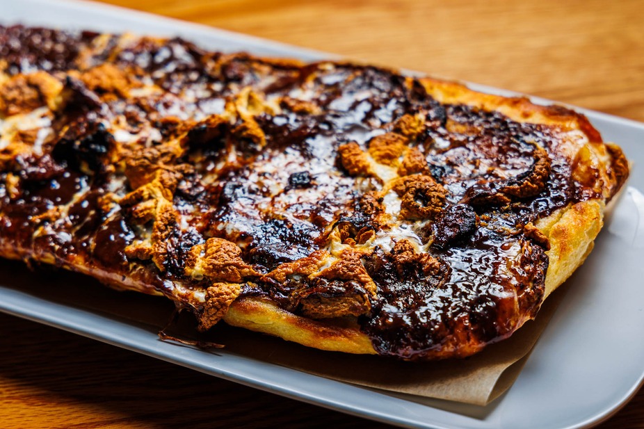 Awesome coffee shop vibes, it has a nice open floor plan and a nice bar. The mocha was great, and I would highly recommend the chicken bacon ranch flat bread pizza.
